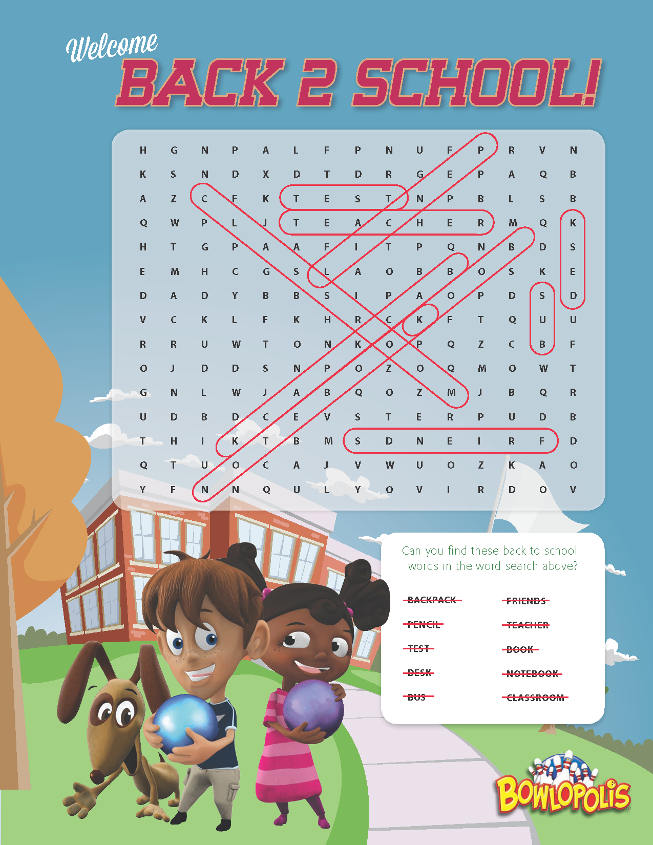 - Back 2 School Word Search (Answer Key)