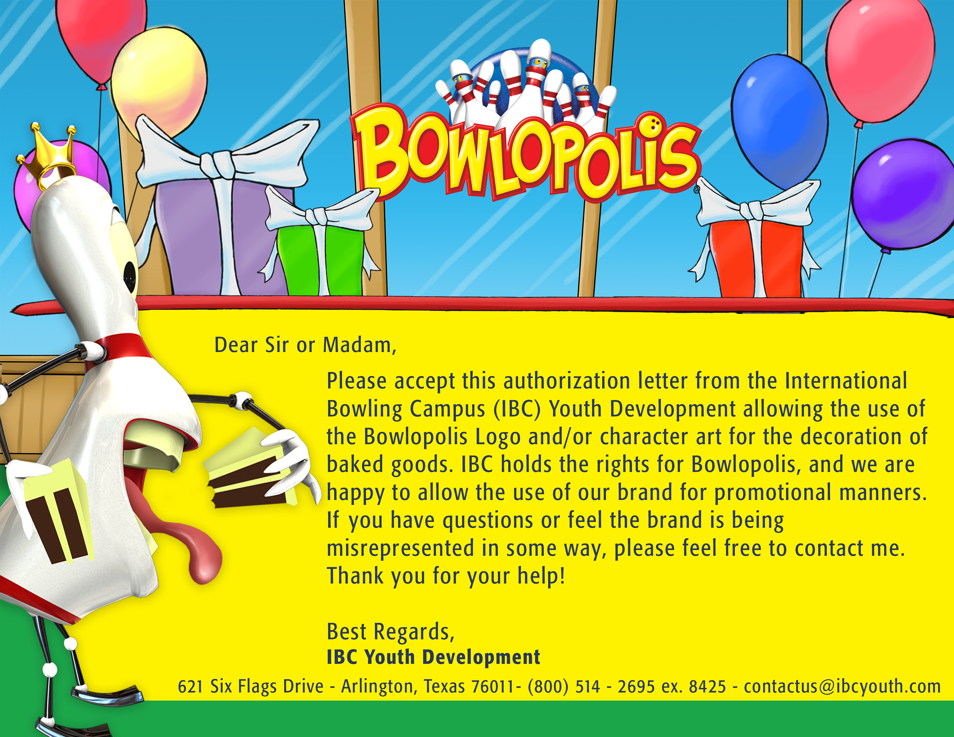 - Cake Form: Use this authorization form to have a Bowlopolis-themed cake for your party.
